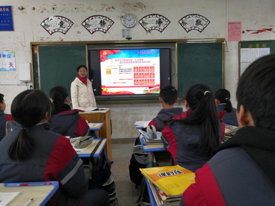 会昌实验学校有党员教师75人、教学班83个。为了推进党的二十大精神进课堂,加强对学生的爱党、爱国、爱社会主义的思想教育,该校以学习宣传党的二十大精神为契机,创新方式方法,认真制定方案,组织党员教师作为宣讲队伍,每个党员挂1至2个班,确保每个班级有党员挂班进行党的二十大精神宣讲。学校党总支加大对党员教师的宣讲培训,并围绕党的二十大主要精神,结合中学生的年龄特征,统一备好课,写好讲义,制作好课件,方便党员到班宣讲。